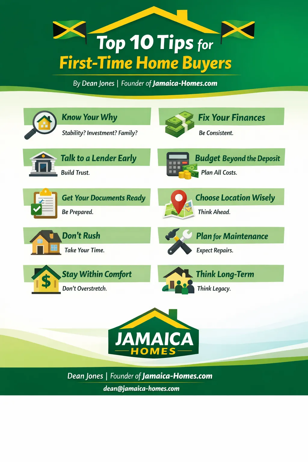 As Dean JonesDean Jones is a chartered builder, project manager, licensed real estate professional and the founder of Jamaica Homes, ... More, Founder of Jamaica HomesJamaica Homes is a premier real estate company offering a comprehensive platform for buying, selling, and renting proper... More, reflects: