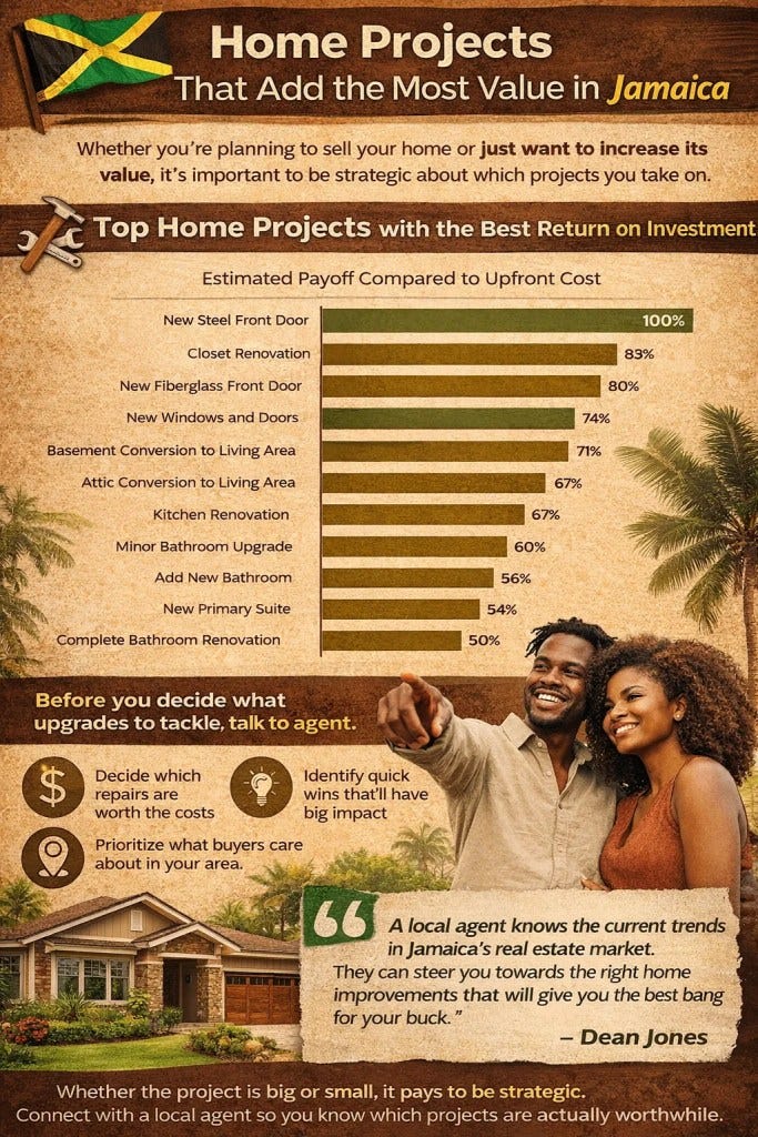 In the U.S., return on investment (ROI) is often calculated narrowly: spend X, get Y back at resale. In Jamaica, ROI must be broader. It includes: