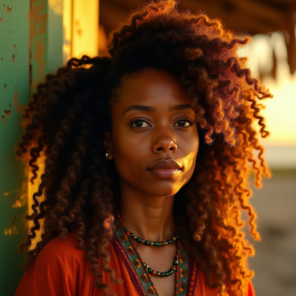 Regal, wise, and striking Rastafarian woman, a seasoned Environmental officer, stands majestically on Jamaica’s coastline, her long, luscious dreadlocks cascading down her back like a rich, dark waterfall. She surveys the proposed development site with discerning eyes, her weathered, golden-brown skin a testament to her years of dedication to preserving the island’s natural beauty.